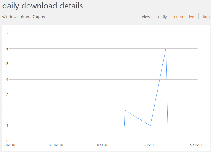 My total investment in the WP7 version of the game was about $3000. Being realistic, I don’t expect to recoup those costs. Still, if can at least earn the $250 necessary for a payout, then I wont have to remove it. I think it’s fair to expect a platform to be capable of covering its own annual costs, don’t you?